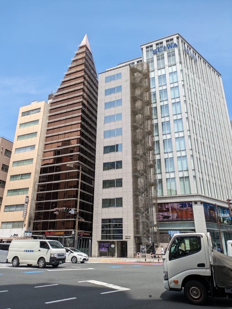 トーハン淡路町ビルは、大理石調の大きなタイル壁と横格子が続く外階段が特徴的な外観を持ち、ビル自体が卓越したデザイン性を誇ります。その細身のシルエットは、街並みに新たなアクセントを加えるとともに、テナントにとって特別な存在感を提供します。